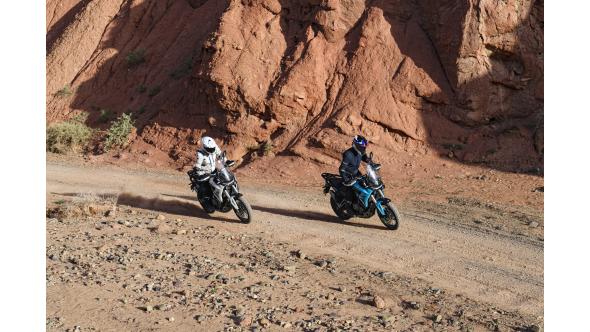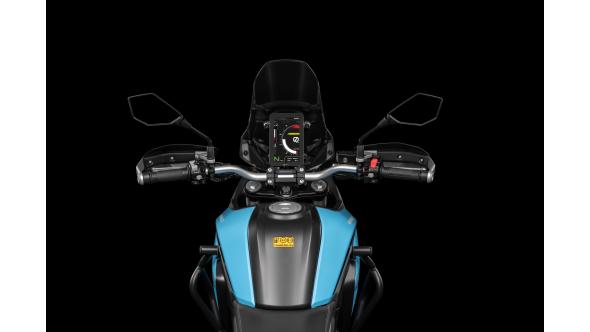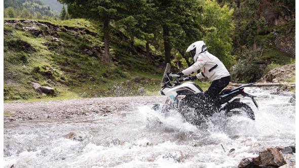Disques ventilés J.Juan avec ABS Bosch. Pneus Pirelli Scorpion Trail STR montés sur des roues à rayons tubeless (19 pouces à l'avant et 17 pouces à l'arrière) pour une traction et une sécurité réelles. Deux modes de conduite, mode standard avec ABS intégral ; mode tout-terrain avec ABS arrière désactivé. Adaptation parfaite du terrain, des routes goudronnées aux pistes accidentées.