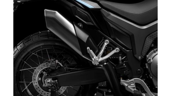 Fourche avant inversée de 43 mm avec débattement de 180 mm et amortisseur arrière avec timonerie et précharge réglable. Maniabilité assurée sur une chaussée accidentée, du gravier ou des terrains meubles.