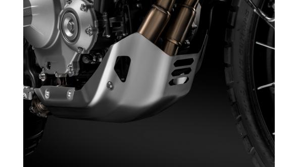 Cadre en acier diamanté à haute résistance conçu pour une rigidité et un contrôle optimaux. Prêt pour l'aventure, il est livré en usine avec une plaque de protection, une béquille centrale, des protège-mains et des barres de protection. Il offre une maniabilité robuste en ville, de la stabilité sur les longs tronçons d'autoroute et une capacité de charge complète pour les randonnées à deux avec bagages, tout en maintenant un poids à vide à seulement 210 kg. Hauteur de selle de 830 mm, guidon large, position de conduite droite et pare-brise réglable.