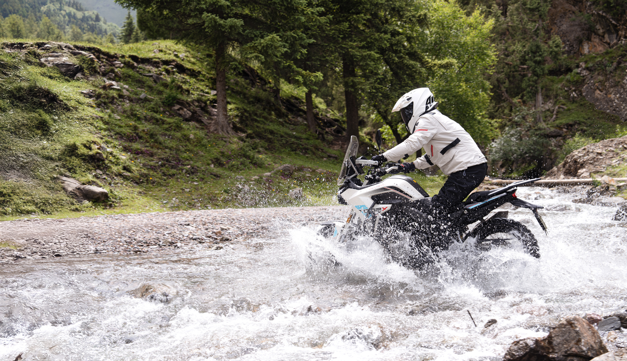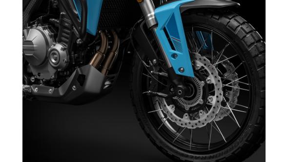 Disques ventilés J.Juan avec ABS Bosch. Pneus Pirelli Scorpion Trail STR montés sur des roues à rayons tubeless (19 pouces à l'avant et 17 pouces à l'arrière) pour une traction et une sécurité réelles. Deux modes de conduite, mode standard avec ABS intégral ; mode tout-terrain avec ABS arrière désactivé. Adaptation parfaite du terrain, des routes goudronnées aux pistes accidentées.
