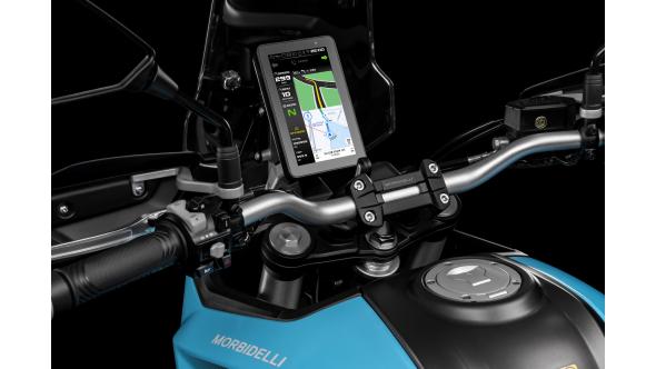Écran couleur avec projection de navigation pour smartphone. Comprend le Bluetooth, l'USB-C, des commutateurs rétroéclairés et un accès gratuit d'un an à Morbidelli Connect. Bouton SOS, alertes de vibration/mouvement, suivi en temps réel et arrêt du moteur à distance, le tout accessible via l'application Morbidelli Connect.