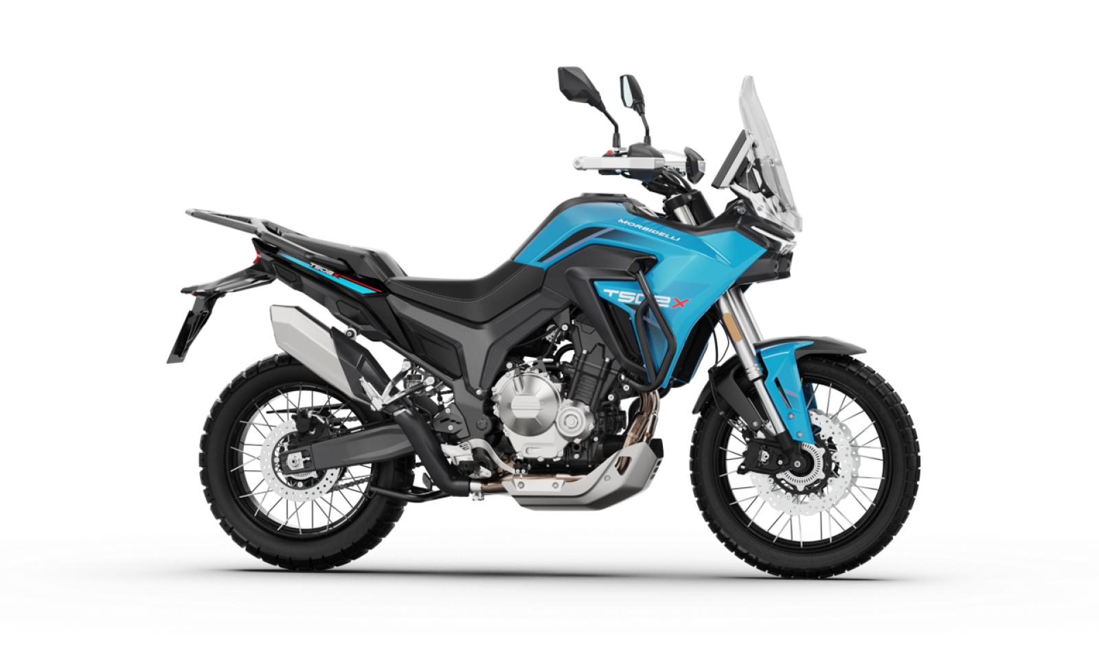 La Morbidelli T502X allie design italien et aventure sur tous les terrains. Son moteur bicylindre parallèle de 494 cm³ développe 47 ch et 45 Nm, associés à une boîte de vitesses à 6 rapports et un embrayage antidribble pour une puissance délivrée en douceur.